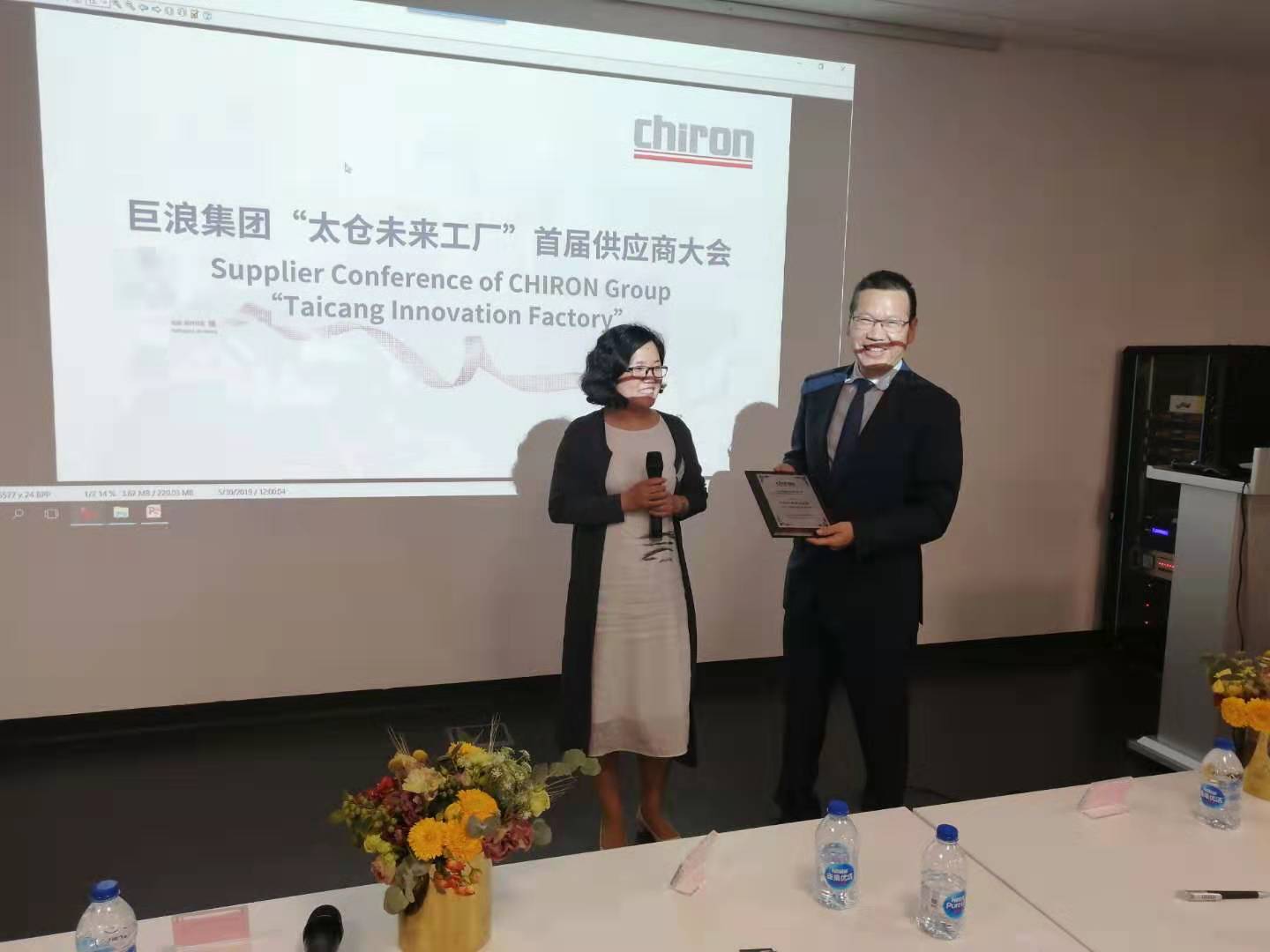 On May 30, 2019, the first supplier conference of Chiron Group “Taicang Future Factory” was held at Taicang Chiron Factory. Mr. Zhou Wei, the general manager of our company, and Ms. Cui Mei, the sales director of our company, were invited to attend. At the meeting, our company won the 2018 Chiron China Supplier Award.