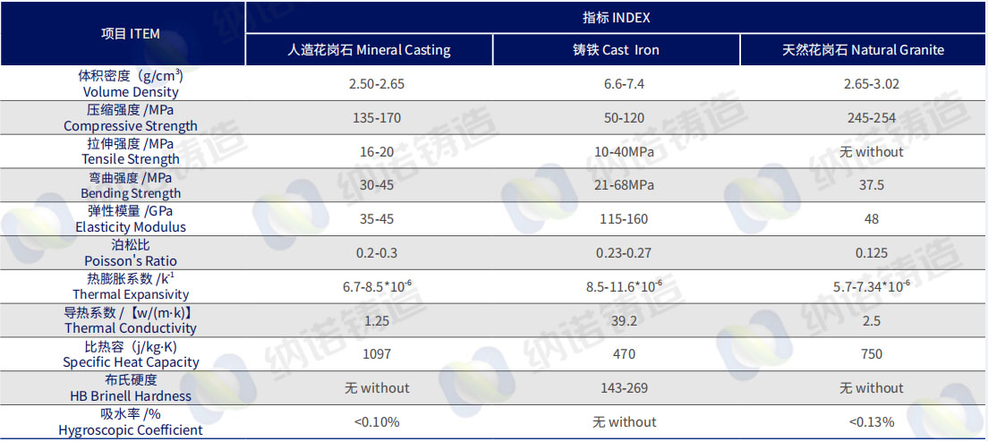 5. Q: How do the mechanical properties of Nano brand artificial granite compare to gray cast iron?