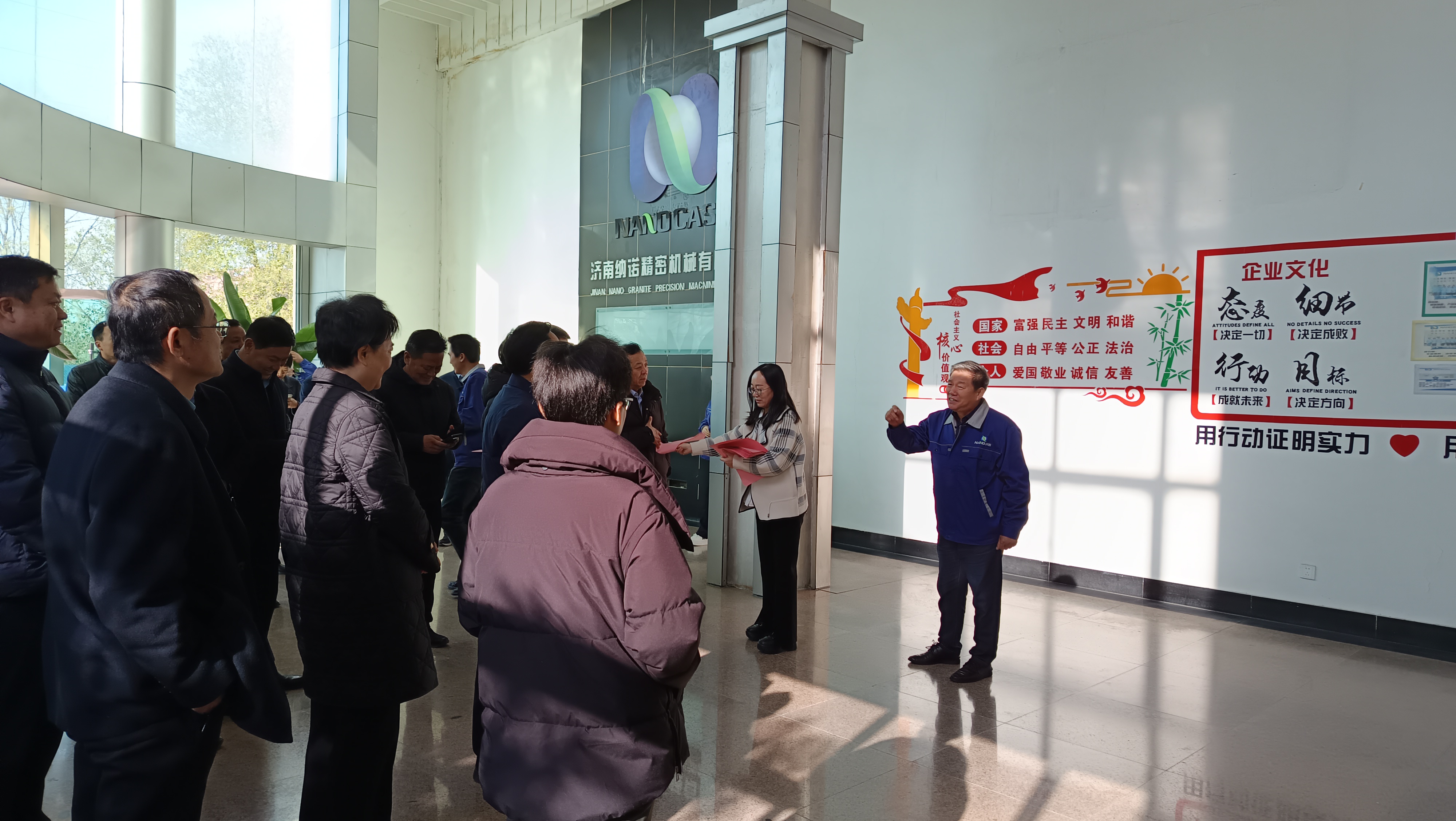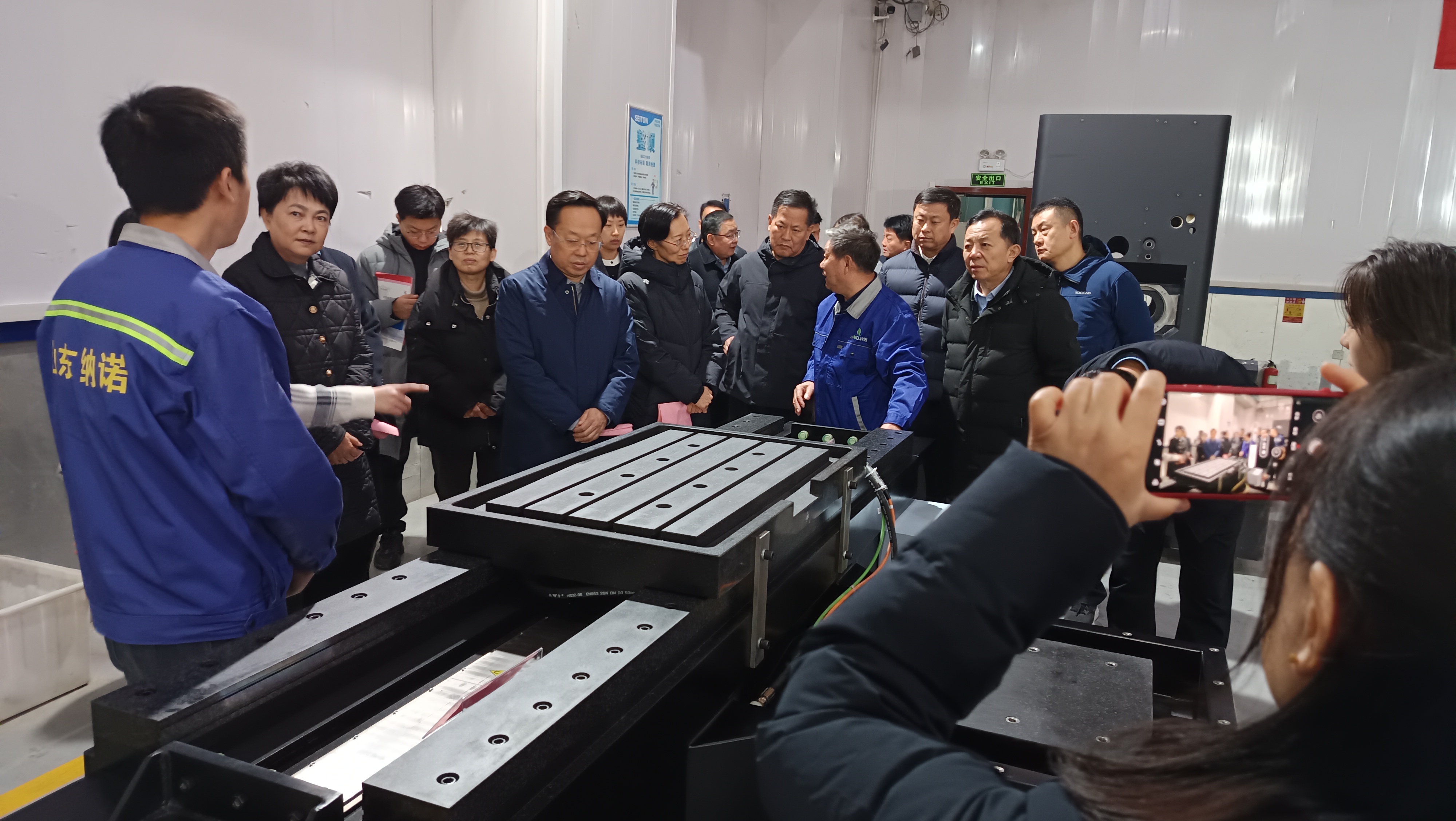 Mr. Zhou Wei first led the inspection team to visit the company's production workshop, where he gave a detailed explanation of the significant advantages of mineral castings over traditional cast iron in terms of shock absorption and environmental protection, and showcased the company's latest developed mineral castings hydrostatic guides technology. Through the on-site visit and explanation, the inspection team had a profound understanding of Shandong Nano's efforts in technological innovation and environmental protection.